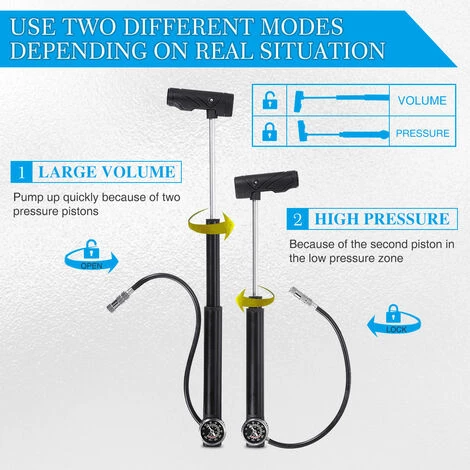 【Exactement】 : vous pouvez mesurer la pression de vos pneus de vélo souhaités rapidement et avec précision avec le manomètre intégré inclus pour répondre au pneu exigences de pression d’une variété de vélos et de terrains différents.