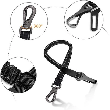 Ceinture De Securite Pour Chien Avec Absorption Des Chocs Et Mousqueton Elastique Reglable Pour Chien Harnais Pour Tous Les Chats Et Chiens (Noir 1 Pièces)