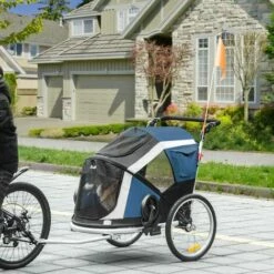 PawHut Remorque Velo Pour Chien Animaux Avec 8 Reflecteurs Drapeau Bleu Noir – Bleu