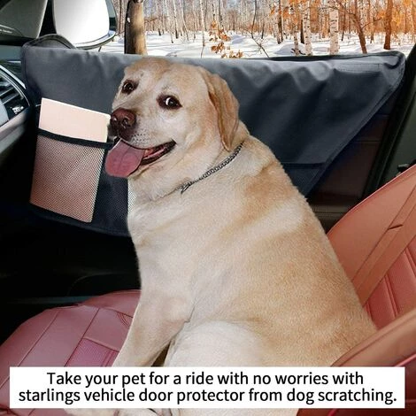 - La couverture en microfibre imperméable protège la porte contre les rayures, les bavures, la saleté. La conception des poches velcro permet d’ouvrir et de fermer facilement; Avec trois sac rangements en filet pour ranger les jouets ou la nourriture de votre chien.