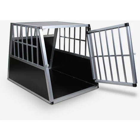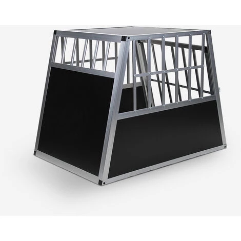 Robuste mais en même temps facile à manipuler, ce box de transport rigide est fabriqué avec une structure trapézoïdale en aluminium de haute qualité qui s’adapte parfaitement aux dimensions des porte-bagages de nombreuses voitures et dont les mesures conviennent au transport de chiens de taille moyenne ou grande. Les côtés ventilés et inclinés assurent un positionnement parfait dans le coffre, avec des grilles sur tout le périmètre qui assurent une bonne circulation de l’air sans risque de surchauffe et offrent également une excellente visibilité pour votre chiot, qui se sentira parfaitement à l’aise. Extrêmement facile à nettoyer grâce à la construction en MDF fini en mélamine, le box résiste efficacement aux agents atmosphériques et il est équipé d’une porte avant fixée avec de solides charnières métalliques qui facilitent l’accès et des coins en plastique pour éviter que votre petit chien ne se blesse pendant le voyage.