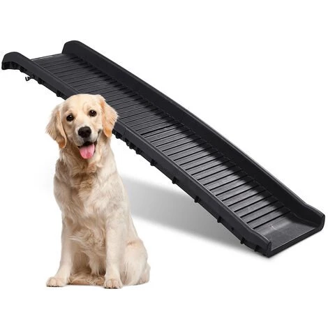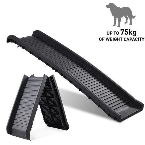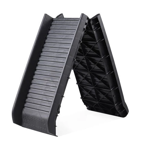 Contrairement aux escaliers, qui sont toujours constitués de marches à franchir, cette confortable rampe pliante est une véritable passerelle idéale pour les chiots, les petits chiens, les chiens en situation de handicape et les chiens ayant des problèmes articulaires ou en surpoids.