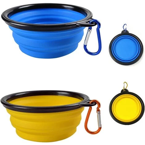 Léger et facile à ranger: les bols pliables emballés avec des mousquetons se fixent à une laisse, un sac à dos, une poussette ou une laisse de dressage de chien.