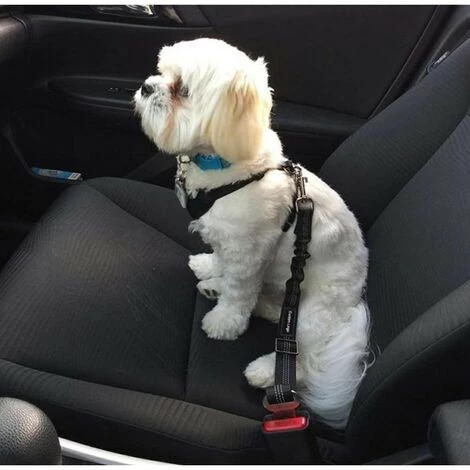 - S’adapte à la plupart des voitures ! Attachez simplement le mousqueton à la boucle de la ceinture de sécurité et l’autre partie de la laisse au collier du chien !