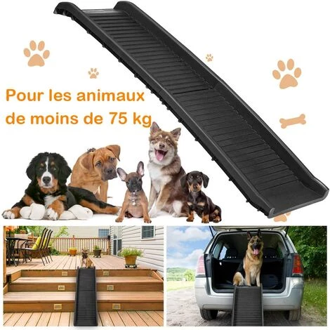 - 【Construction à toute épreuve】Fabriqué en PP durable de haute qualité, cette rampe pour chien est assez stable pour supporter jusqu’à 75kg., offrant un espace sûr pour la descente de votre animal de compagnie