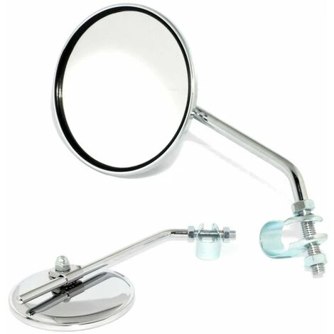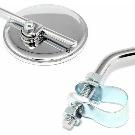Rétroviseur rond acier chromé ; Diamètre = 75mm ; Fixation réglable au cintre (convient pour utilisation courante 22.2 mm) ; Réversible, peut-être utilisé à droite ou à gauche ; Lors du montage nous vous conseillons de placer un morceau de chambre à air usée entre le collier et le cintre. Cela améliorera la fixation et réduira les effets de « tremblements » ; Vendu unitairement ;