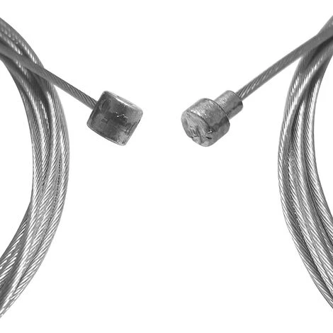 2x câble de longueur 2m (diamètre 1.5mm) avec double tête, une tête marteau 6x7mm (vtt) et une tête poire 6x8mm (route) ; Vous pourrez ainsi couper les câbles à la longueur souhaitée et conserver la tête de câble adaptée à votre vélo ; Matériaux de qualité (Acier galvanisé) pour vous apporter le meilleur rapport qualité/prix ; Nous vous conseillons de lubrifier le câble lors de son installation pour en allonger la durée de vie ; Sertir les embouts de câbles (inclus) après montage afin d’éviter que ces derniers ne s’effilochent ;