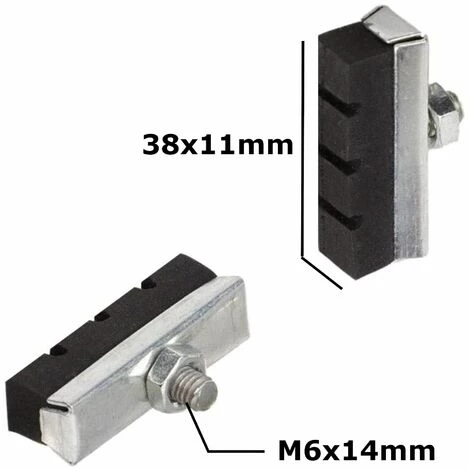 Lot de 4 patins de frein à vis traditionnel ; Longueur = 40mm ; Diamètre de vis M6 ; Acier galvanisé et caoutchouc ;