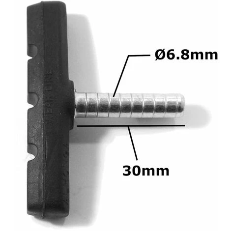 Lot de 4 patins de frein à tige symétriques ; Compatible avec Shimano Tektro Avid Sram ; Longueur = 60mm ; Diamètre de la tige = 6,8mm ; Acier galvanisé et caoutchouc ;
