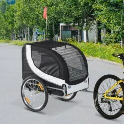HOMCOM Remorque Velo Pour Chien Animaux Avec Drapeau Et 8 Reflecteurs Blanc Et Noir – Blanc