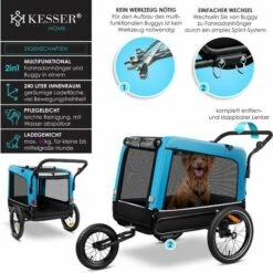 PawHut Remorque Velo Pour Chien Animaux Avec 8 Reflecteurs Drapeau Bleu Noir – Bleu