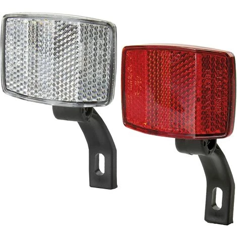 Réflecteur arrière rouge + avant blanc / Avec système de fixation réglable / Dimension du réflecteur : 58 x 42mm