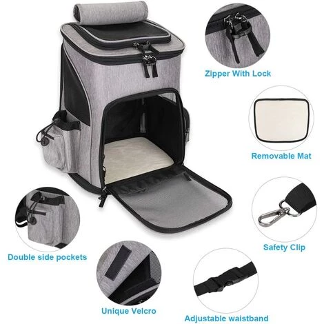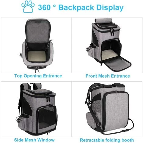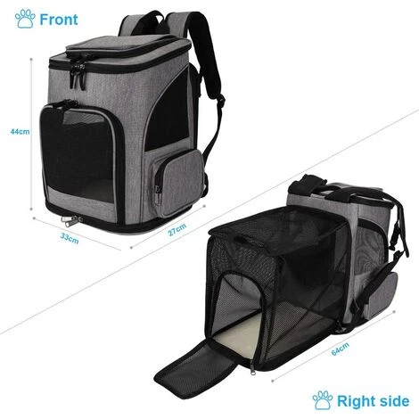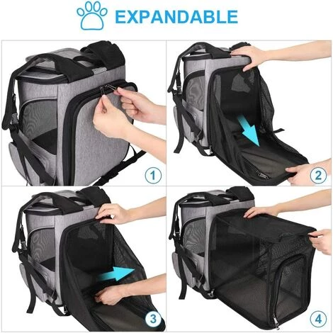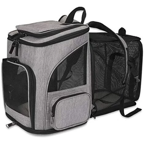 DEVENIRRICHE Sac De Transport Chat Chien Extensible Pliable Double épaule Sac à Dos Pour Animaux Respirant Paniers De Transport Avec Fenêtre En Maille Filet Pour Voyage En Train Voiture Avion Gris