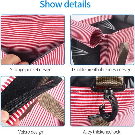Ventilation: Il a une fenêtre en maille sur le côté pour la ventilation. Deux poches latérales pour stocker des friandises. Lorsque vous voyagez sur la route, faites de petits voyages, ce transporteur d’animaux vous facilitera beaucoup la tâche.