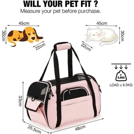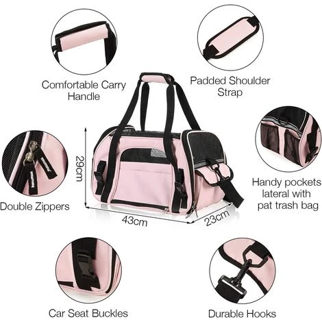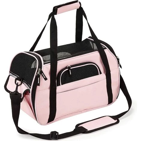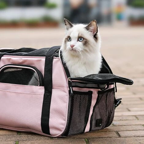 GALOZZOIT Sac De Transport Pour Chat, Sac à Main Bandoulière Démontable Lavable Pliable Pour Chat Chaton Petit Chien Lapin Animal De Compagnie Homologué Avion (48 * 25 * 34CM) Rose