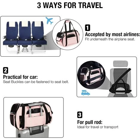 - MULTIFONCTIONNEL – Le design de ce sac transport chien est bien pratique pour les voyages en avion, train et voiture. Vous pouvez fixer ce sac de transport chat sur le siège de la voiture par la ceinture de sécurité. Et vous pouvez aussi attacher ce sac à votre valisette à roulettes.