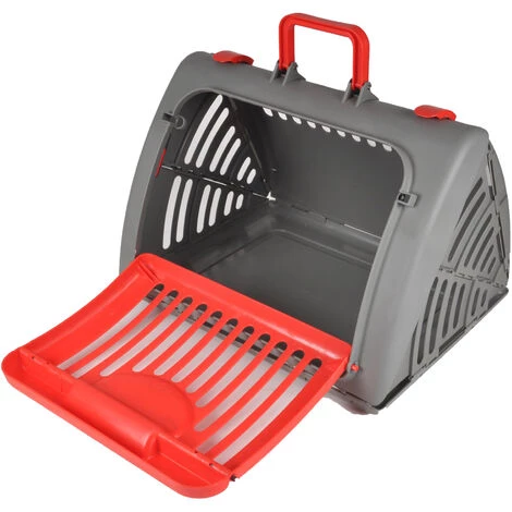 HOMEMAISON Caisse De Transport Pliable En Plastique Pour Animaux Anthracite/Rouge 46 X 35 X H33 Cm – Anthracite/Rouge