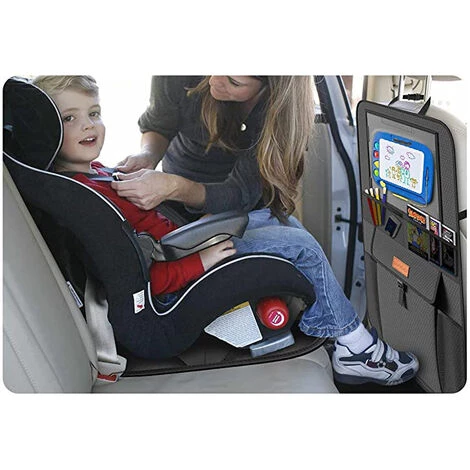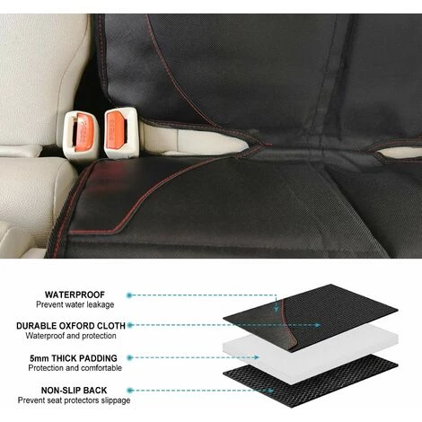 Conception sûre : Le protecteur de siège auto pour enfant est doté d’une ceinture de sécurité réglable qui s’enclenche autour de l’appui-tête, place le couvercle rabattable dans le siège et les points antidérapants offrent une adhérence supplémentaire sans se soucier du glissement du siège auto, les coins en cuir PVC garantissent votre siège auto pour enfant reste en place.