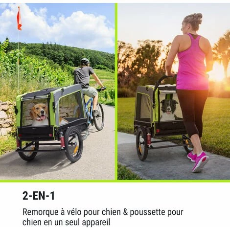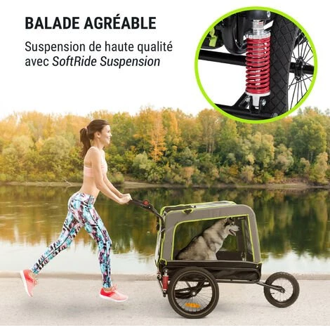 Pour nos amis inséparables : profitez de balades à vélo et de jogging ensemble avec la remorque de vélo et poussette pour chien 2 en 1 Klarfit Husky Vario.