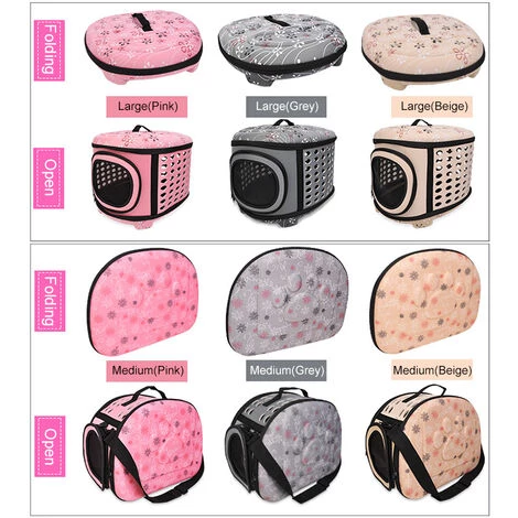 Emballage inclus: 1x transporteur pliable pour animaux de compagnie1x bandoulière (veuillez noter la taille L / Mini pour le porte-mains sans Bandes d’épaule) Caractéristiques: 1. NOUVEAU MATÉRIAU DE HAUTE QUALITÉ: L’emballage est principalement composé d’un matériau EVA hautement polymère, ce qui le rend léger, portable et portable. Il est étanche et facile à nettoyer. Votre animal tombera amoureux de ce joli sac doux.Conception de pliage délicate: la conception du portefeuille portable vous permet de le démonter très facilement lorsque vous n’en avez pas besoin, pliez-le simplement pour éviter de prendre plus de place, grand ou petit, comme vous voulez.3.AIR TOUJOURS FRAIS: Le système de ventilation est ingénieux. Les deux côtés du sac et du dessus sont. Les panneaux de maille ajoutés permettent une accessibilité et une ventilation maximales pour votre animal de compagnie.4.FINE TRAVAIL: La fermeture à glissière est flexible, les coutures sont strictes et le fond dur peut empêcher la déformation efficacement.5.LABOR-SAVING & CUTE COULEUR: Sangles de transport à la main et réglables la bandoulière rembourrée permet de nombreuses options de transport. Différents choix de couleurs vous rendront sûrement satisfait.Spécification: Matériel: Premium EVACouleur: Rose, Gris, BeigeUtilisation: Convient pour les chats de petite / moyenne / grande taille Animaux Voyage Conseils: 1.Veuillez mesurer vos animaux de compagnie avant l’achat! Assurez-vous que suffisamment de place pour vos animaux de compagnie! 2.Pour aider vos animaux de compagnie à s’habituer à cette nouvelle cage, utilisez-le avant de le nettoyer ou mettez-y des objets préférés de votre animal.