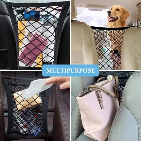 PRATIQUE : le rangement en filet de barrière de siège arrière de voiture aide à garder vos effets personnels organisés et organisés dans des endroits accessibles. Organisez et rangez les mouchoirs, les CD, l’eau, les MP3, les journaux, les magazines, etc. Gardez les articles en sécurité pendant la conduite et ne tomberont pas. Inutile de quitter la route des yeux. Réduit considérablement la distraction au volant.