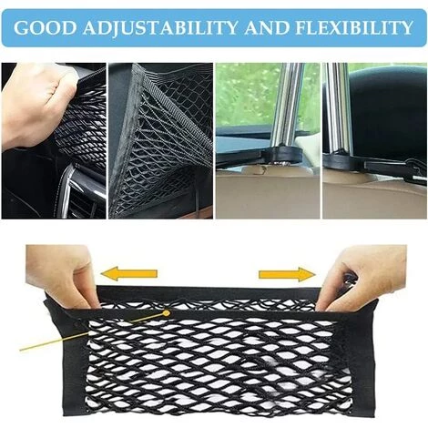 MATÉRIAU PREMIUM: Ce filet de rangement pour siège auto est composé de fibre de polyester épaissie, d’une bordure plus flexible et compacte et d’une double couche plus durable. Fabriqué à partir de cordons élastiques en polyester hautement élastiques et de crochets en plastique robustes, recherchés pour leur durabilité. Le matériau en maille élastique s’étire au besoin