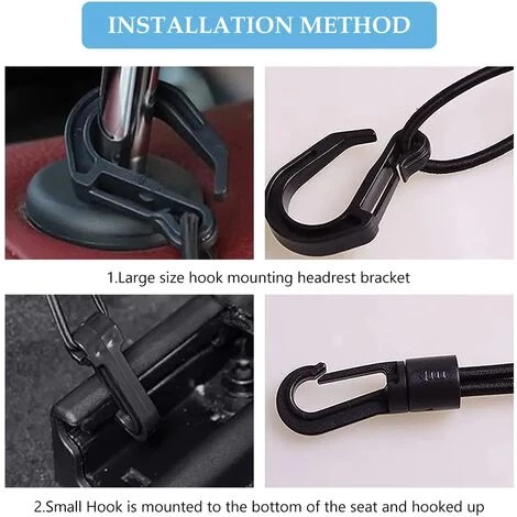 FACILE À INSTALLER : aucun perçage ni autocollant requis, équipé de 4 crochets de sécurité fiables, accrochez tout le filet de rangement à la barre de l’appui-tête en 1 minute, connectez le filet de rangement du siège auto avec la boucle d’angle du cordon extensible à votre véhicule. Les crochets en plastique dur renforcé et les supports de quincaillerie le maintiennent stable et sécurisé.