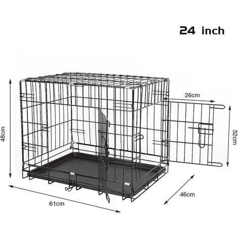 * Description du produit : Cage en métal pour transporter votre chien en toute sécurité, avec une poignée de transport et deux , portes.