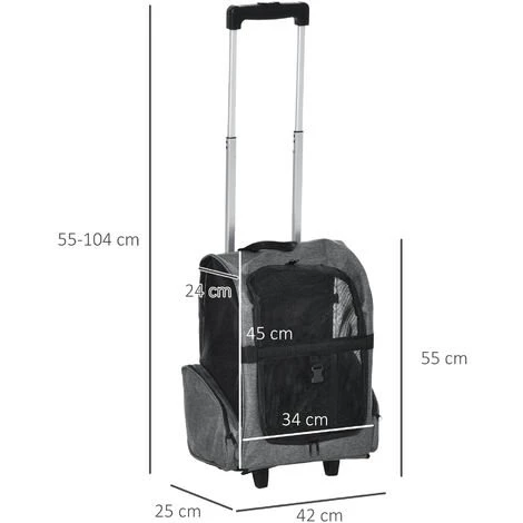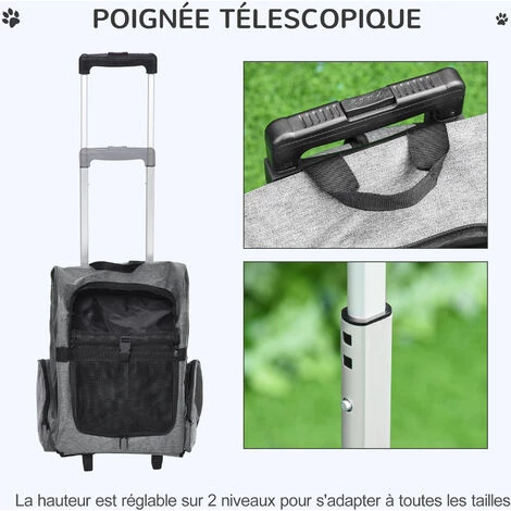 Ce trolley chic est idéal comme un sac à dos ou un chariot pour transporter les petits chiens, chats et autres animaux domestiques en voyage. Il est très pratique grâce à ses roulettes, ses sangles et sa poignée téléscopique.
