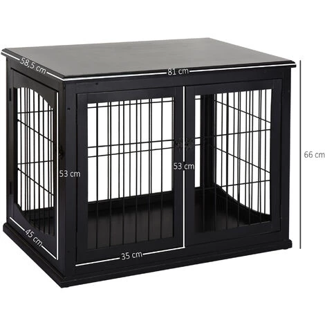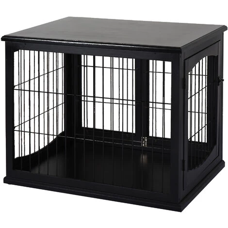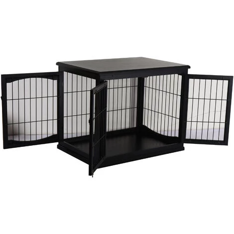 – Cage pour chien en bois MDF classe E1 peint en noir avec grilles en métal époxy noir