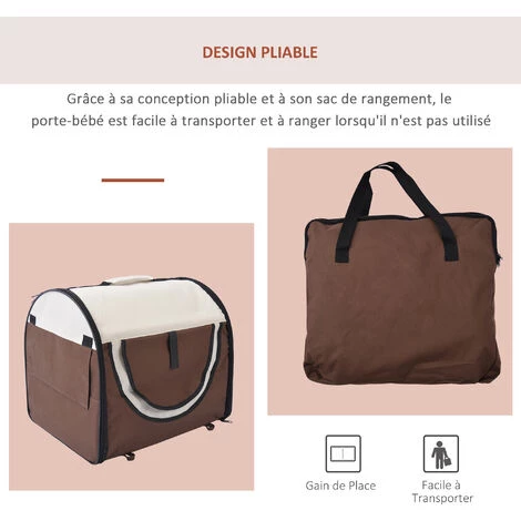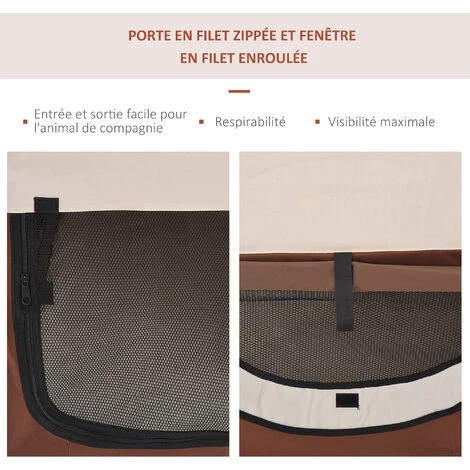 PawHut Sac De Transport Pour Chien Et Chat Pliable – Poignée, Entrée Zippée, Fenêtres Maillées Enroulables- Coussin Inclus – Acier Oxford Marron Beige