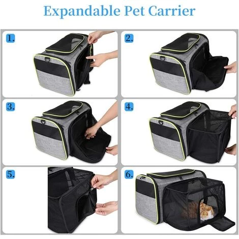 Extensible Cette cage de transport est extensible de 60% en crée un espace confortable pour votre animal de compagnie de faire demi-tour et prolifération à l’extérieur. que votre animal de compagnie soit à l’aise et que l’air y circule librement. Plus aucune surchauffe, anxiété et inconfort.