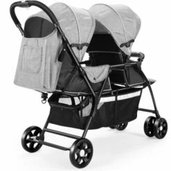 Poussette Double Pliable LUCKZON Poussettes BéBé Tandem à 4 Roues Pour Jumeaux, Jusqu’à 15 Kg – Gris