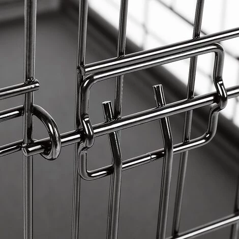 · La boîte à chien avec grille convient comme boîte de transport stable pour la sécurité de votre chien. En quelques étapes simples, la boîte à chien est prête à l’emploi et ne nécessite que peu d’espace une fois repliée. Les deux grandes portes situées à l’avant et sur les côtés permettent un accès rapide à votre animal et lui permettent d’entrer et de sortir facilement de la boîte. Les boîtes à chiens sont également idéales pour les chiots. Le fil métallique robuste offre une vue imprenable, le plateau inférieur peut être retiré, les coins arrondis sont utilisés pour protéger les chiens. Que ce soit dans la voiture ou dans la chambre d’hôtel: