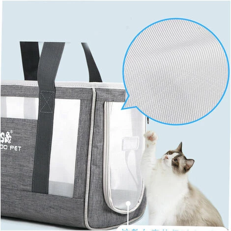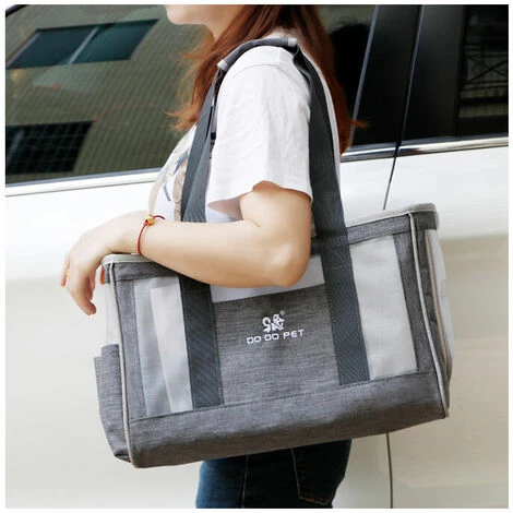 STARLIGHT Sac Transport Chat, Sac Transport Chien Respirant Et Pliable Avec Coussin épaissie Confortable Pour Voyage En Train, Voiture, Restaurant, Avion,Tissu Oxford Gris Taille L (44 X 17 X 29cm),STAR.L