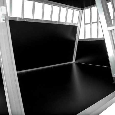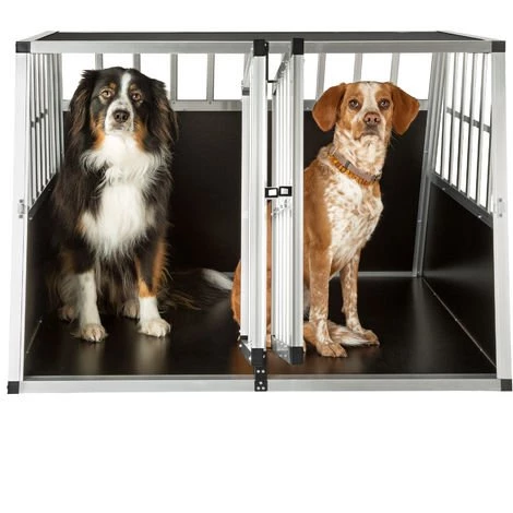 Cage Caisse Box de Transport pour Chiens Double Confortable et Sécurisé en Aluminium 104 cm x 90,5 cm x 69 cm Noir TECTAKE. Vous voulez que votre chien vous accompagne de manière sûre et confortable en voiture, lors de voyages ? La double cage de transport pour chiens mobile garantit la sécurité et le confort de votre fidèle compagnon. La caisse de transport est réalisée en aluminium et en bois. Ces matériaux sont de qualité et faciles à nettoyer. Grâce à ces matériaux, la cage se conserve bien et est légère à porter. La grille étant large, votre compagnon à quatre pattes profite pleinement d’air frais et d’une visibilité sans faille qui lui apporte un confort optimal.