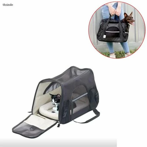 Convient aux animaux de compagnie ne pesant pas plus de 8 kg. – Bandoulière avec poignée rembourrée et porte-nom. – Sécurité dans l’obscurité: miroirs à trois côtés. – Facile à ranger: se plie pour gagner de la place. – La couleur noire
