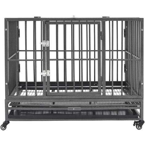 Cette cage pour animaux de compagnie est équipée de quatre roues pour un déplacement facile. Deux des roues sont verrouillables afin d’éviter le déplacement accidentel. Cet enclos pour chiots comprend une porte avec deux loquets de sécurité pour un accès facile. Vous pouvez facilement nettoyer la cage grâce à son plateau détachable. De plus, le cadre en acier robuste assure une ventilation et une visibilité optimales, offrant à votre chien un environnement confortable et fiable.