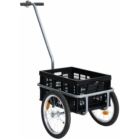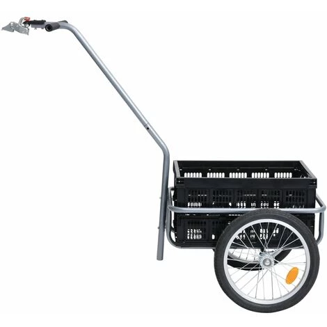 Cette remorque pour vélo est en métal ce qui la rend très robuste et durable. De plus, elle a une conception d’accouplement à billes pour une fixation rapide au vélo. Dotée de 2 poignées sur la barre d’attelage, la remorque peut également être utilisée comme wagon à main. Le réflecteur coloré haute visibilité est conçu pour améliorer la sécurité. Grâce à la boîte de transport amovible avec une capacité de charge importante de 150 kg, la remorque avec boîte est idéale pour transporter des courses, du matériel de camping, des articles de sport ou tout ce que vous devez emporter.