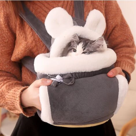 « Hiver chaud sac de transport pour animaux de compagnie en peluche chat Transport sac à dos mignon Portable petit chien sac poitrine Pack chiot transport chats voyage
