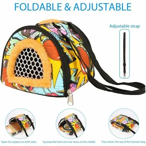 【Pliable et réglable】 3 étapes pour plier le porte-hamster, ouvrir les 2 fermetures à glissière et presser les portes avant et arrière au milieu pour plier le sac pour hamster. Une fois plié, le sac pour hamster est petit et facile à transporter et ne