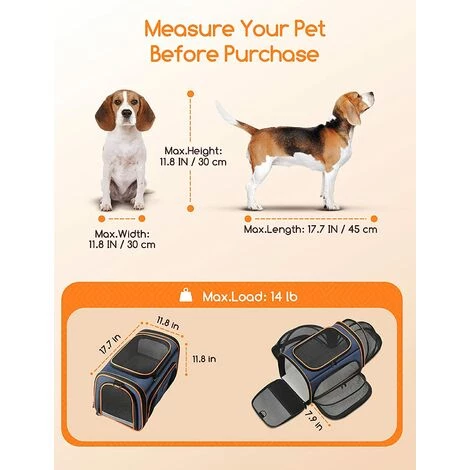 【Transporteur pour chats extensible】Le sac pour animaux domestiques mesure 11,8*11,8*17 pouces et a une capacité de poids maximale de 6,5 kg. Il est recommandé de mesurer votre animal avant de l’utiliser.Avec trois compartiments extensibles, ce sac de transport pour chats offre un espace supplémentaire de tous les c?tés pour que l’animal puisse se lever et se retourner.